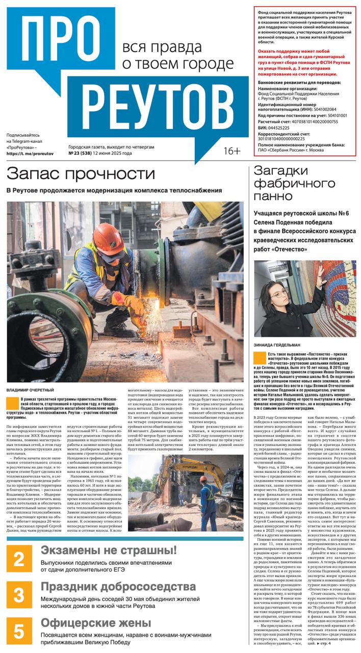 В четверг, 12 июня, вышел 23-й (538) выпуск бесплатной газеты «ПроРеутов».