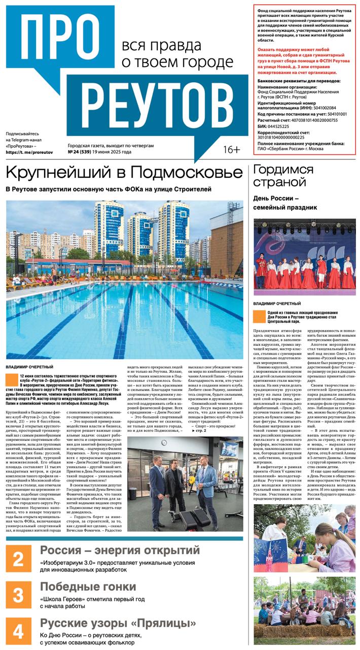 В четверг, 19 июня, вышел 24-й (539) выпуск бесплатной газеты «ПроРеутов».