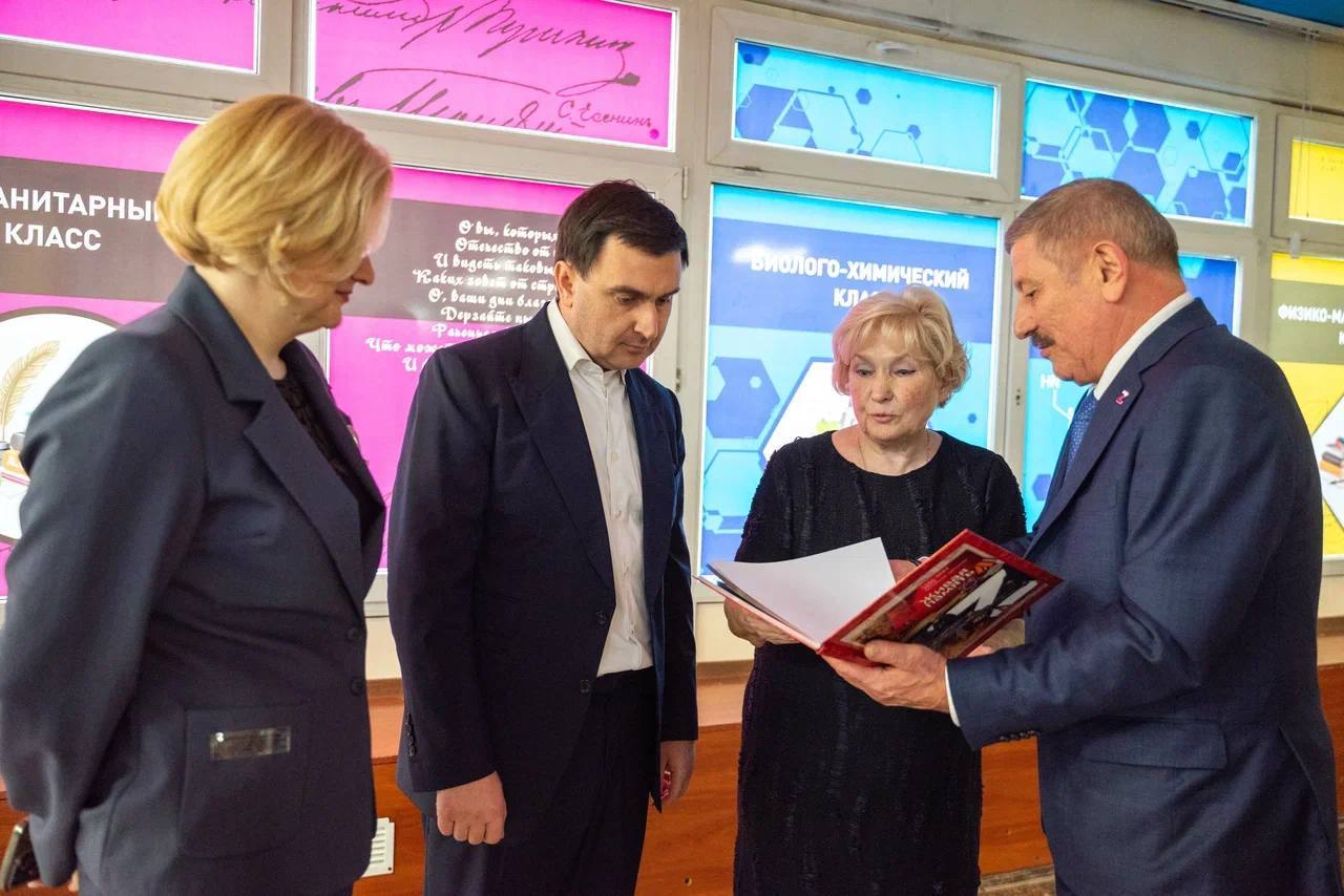 После музея все прошли в инновационный кабинет естественных наук, где дети проводят опыты по химии,физике и биологии. В день визита депутата там занимались ученики третьего класса: они исследовали бактерии с помощью микроскопов.
