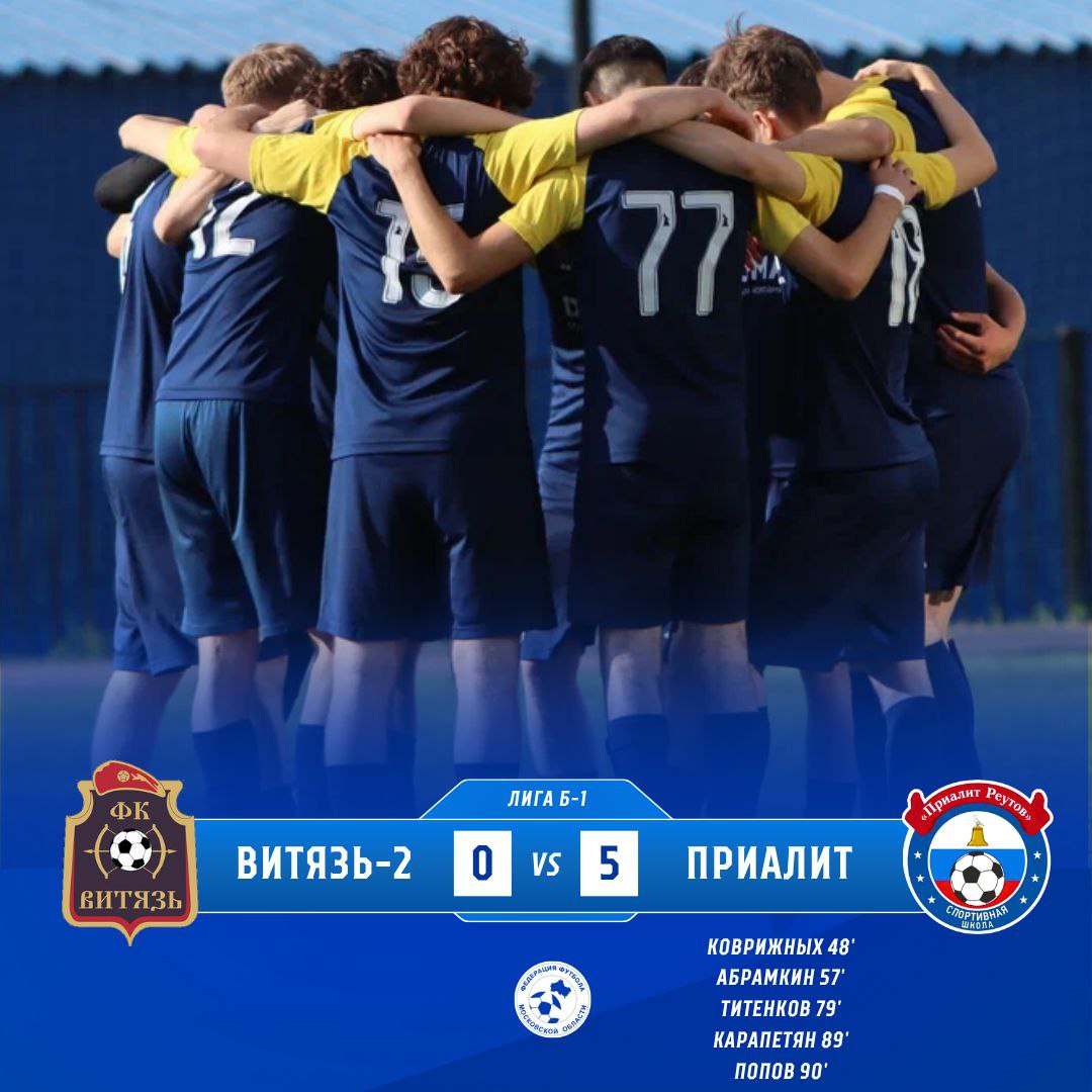 Основная команда спортивной школы "Приалит" на мажорной ноте завершила первый круг турнира Московской области по футболу, лига "Б-1". Наши футболисты разгромили соперников из Ногинска "Витязь-2" 5:0 и поднялись на пятое место в турнирной таблице. До призового места у наших молодых футболистов - 6 очков, что не представляется непреодолимым. Ведь даже лучшие снайперы в команде ныне - 17- и 18-летние игроки, которые с каждой игрой обретают уверенность и опыт.