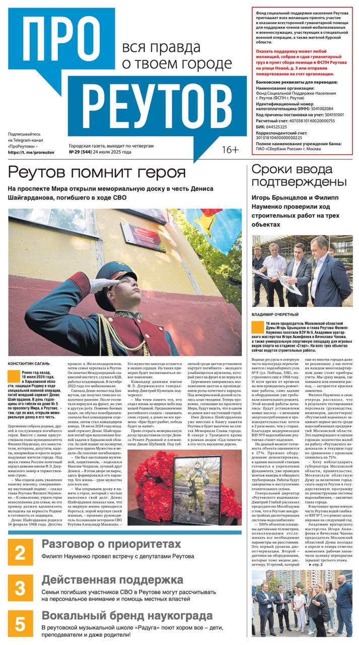 В четверг, 24 июля, вышел 29-й (544) выпуск бесплатной газеты «ПроРеутов».