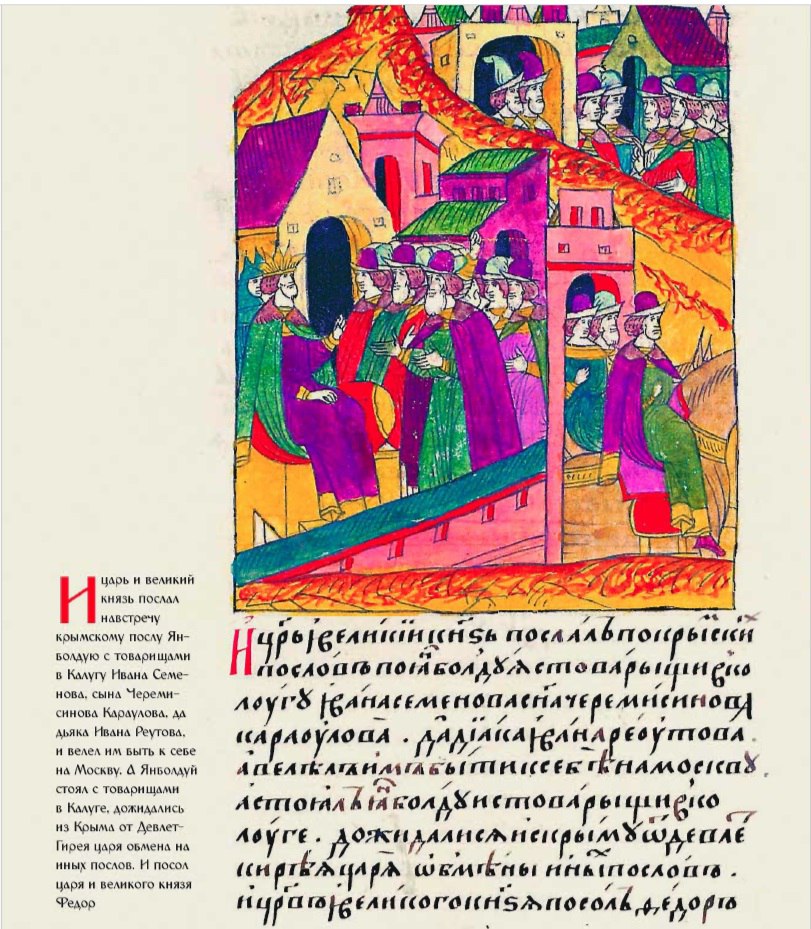 «И царь, и великий князь послал навстречу крымскому послу Янболдую с товарищами в Калугу Ивана Семенова сына Черемисина Караулова да дьяка Ивана Реутова...» (Лицевой летописный свод. Книга 23. Издание Общества любителей древней письменности, 2022. С. 332).