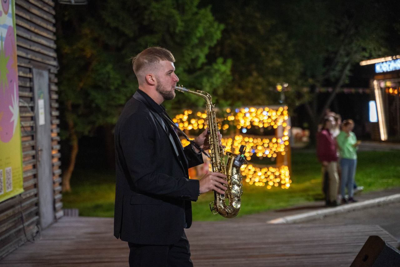 Весь летний субботний вечер со сцены парка звучала музыка в исполнении творческих коллективов города, а завершила музыкальную программу летней акции «Ночь в парке» музыкальная джазовая гостиная под звуки соло на саксофоне.