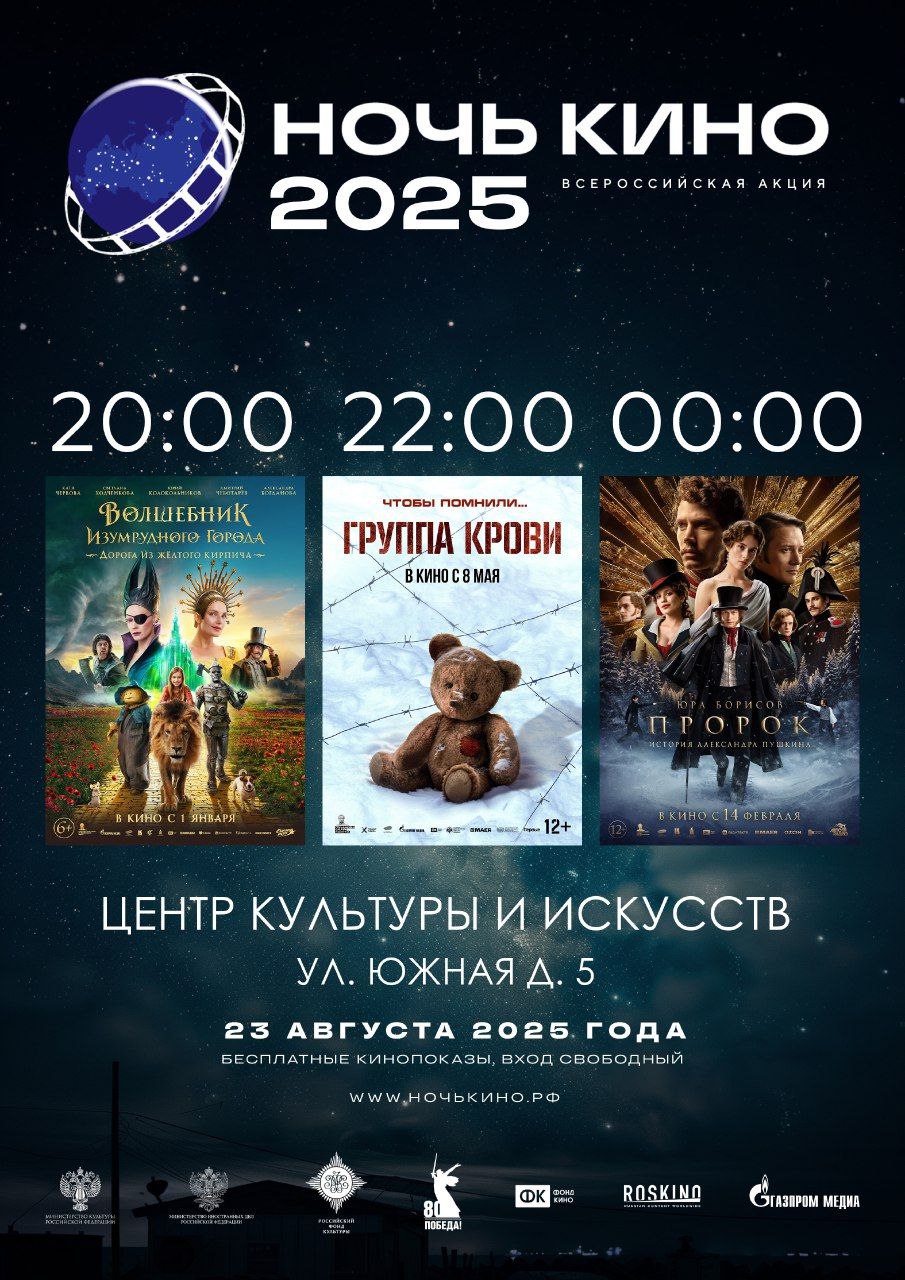 23 августа в Центре культуры и искусств Реутова, который находится на ул. Южная, д. 5, пройдёт всероссийская акция «Ночь кино» с бесплатными показами главных премьер года!