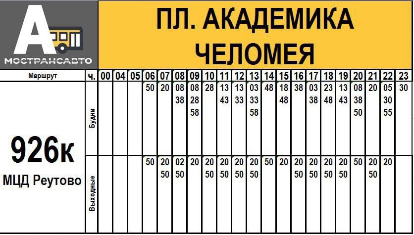 С 25 августа 2025 года в Реутове вступает в силу новое расписание автобусного маршрута № 926к. Обновление предусматривает увеличение количества рейсов в будние дни с 58 до 66 и добавление одного автобуса малого класса. Это решение принято в рамках планомерной работы по повышению качества транспортного обслуживания горожан.