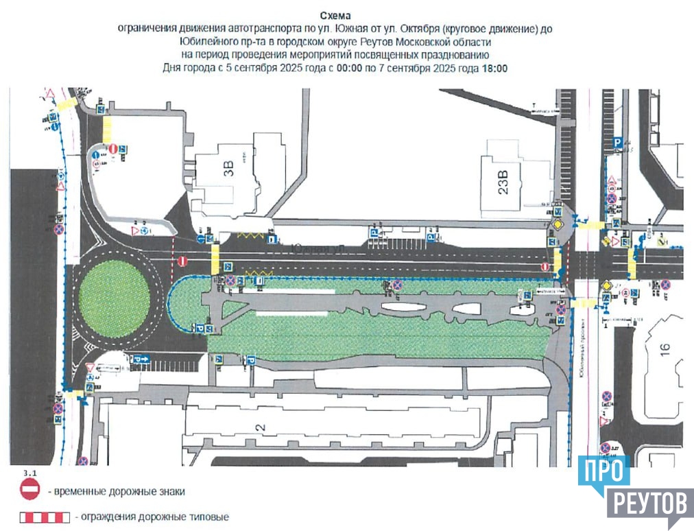 В связи с проведением мероприятий, посвященных празднованию 85-летия городского округа Реутов, с 00:00 5 сентября до 18:00 7 сентября 2025 года будет временно прекращено движение транспортных средств на следующих участках автомобильных дорог: