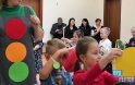 Как на настоящем уроке, все началось с повторения ранее усвоенного материала. Малыши уверенно называли, на какой сигнал светофора можно переходить проезжую часть, на какой — нельзя и почему даже при зеленом сигнале необходимо сначала посмотреть направо и налево.