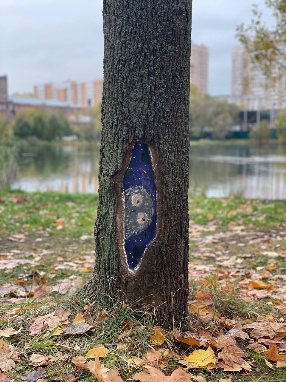 — Инициатива исходила от администрации города в рамках экологического проекта по сохранению природы. Идея заключалась в том, чтобы не просто украсить парк, а помочь деревьям. Поврежденные места на стволах мы тщательно подготавливаем: сначала ошкуриваем, покрываем защитным раствором, а затем накладываем грунт. И только после этого делаем карандашный эскиз и рисуем акриловыми красками. Они создают дополнительный защитный слой от влаги, бактерий и вредителей. Так что рисунок — это не только украшение, но и своего рода терапия для дерева. Пока таких работ только три, но, если найдется подходящее дерево, мы обязательно сделаем рисунок и на нем.