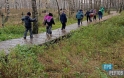 Маршрут тропы «Заповедный лес» проходил по деревянным мосткам через берёзовую рощу и хвойный лес, с видами на заливные луга. Туристы пытались найти на обратном пути на стволах берёз тёмный нарост (без почек или веточек) — это чага. Кто увидит первым — тот внимательный.
