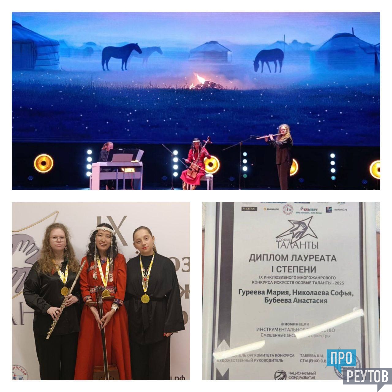 Воспитанники реутовской школы искусств одержали победу на Международном инклюзивном конкурсе «Особые таланты — 2025». Трио «Необыкновенные исполнители» в составе выпускниц Марии Гуреевой и Софьи Николаевой, а также их преподавателя Анастасии Бубеевой, стало лучшим в номинации «Инструментальное исполнительство, смешанные ансамбли и оркестры».