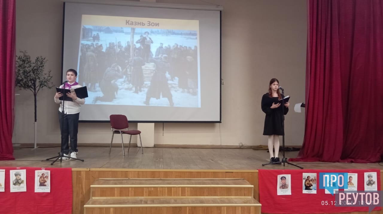5 декабря, в День воинской славы России, в 84-ю годовщину начала контрнаступления советских войск в битве под Москвой, учащиеся 6-х классов средней школы №4 города Реутов провели урок мужества «Мы не дрогнем в бою за столицу свою». Каждый класс подготовил рассказ о герое Московской битвы.