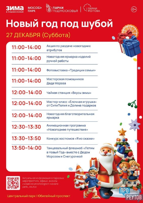 27 декабря с 11:00 до 14:00 в Центральном парке у главной елки состоится праздничное мероприятие «Новый год под шубой». Администрация городского округа приглашает реутовчан и гостей города окунуться в атмосферу зимней сказки.