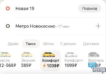 Естественно, тенденция подорожания услуг такси в эти дни напрямую распространяется и на Реутов. Так, сегодня около 11 проехать из одной части города в другую (а это менее 2 км) стоило от 600 (тариф "эконом") до 1000 рублей ("комфорт").