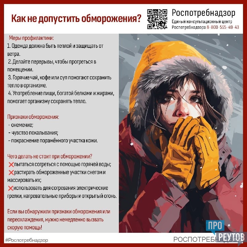 Ногинский территориальный отдел Управления Роспотребнадзора по Московской области напоминает об основных правилах профилактики обморожения при прогулках и работе на воздухе.