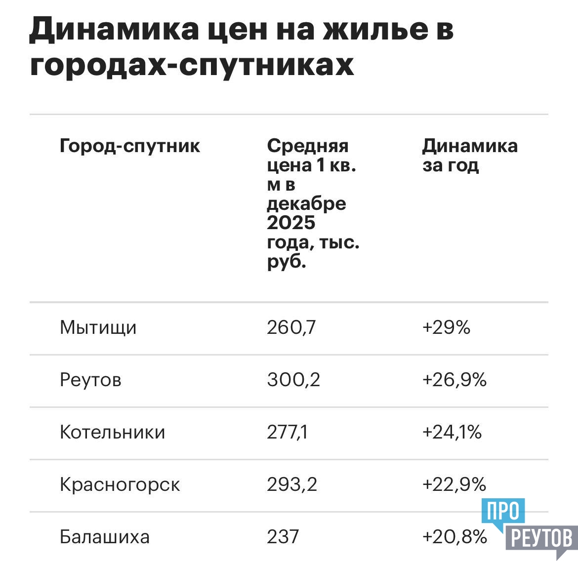 Ранее, по данным на октябрь 2025 года, Реутов также возглавлял аналогичный рейтинг, показав увеличение цены на 24,2% с начала года. Аналитики отмечают, что ограниченный объём новых проектов в городе делает рынок чувствительным к подобным изменениям.