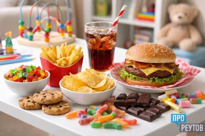 Ранний перевод ребенка на «взрослый» стол. В рационе ребенка появляется много недетских продуктов, таких как шоколад, газированные напитки, кетчуп, майонез, чипсы, полуфабрикаты, фастфуд.