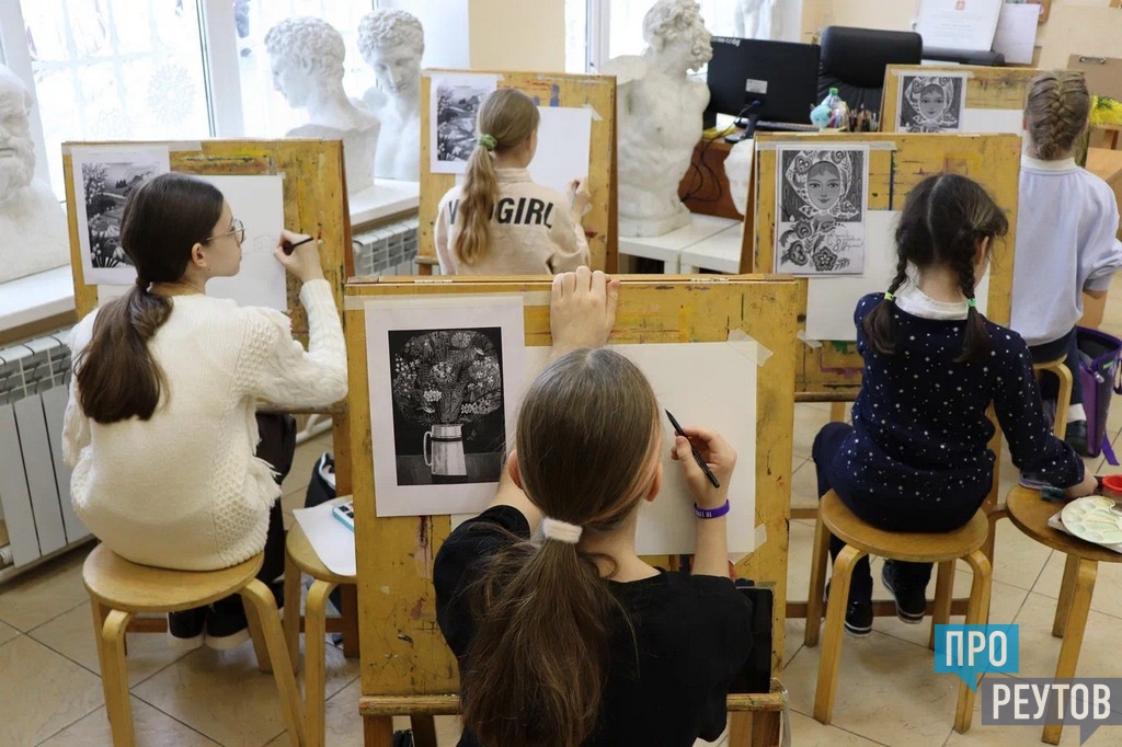Особенностью реутовской Детской художественной школы является разносторонний подход к материалам. Младшие классы работают в акварели, осваивая ее воздушность, а старшие ученики на конкурсных работах могут использовать смешанные техники: гуашь, акрил, темперу, добавлять акварельные карандаши. Все преподаватели владеют разными техниками, чтобы вести класс на протяжении пяти лет обучения, постепенно усложняя программу.