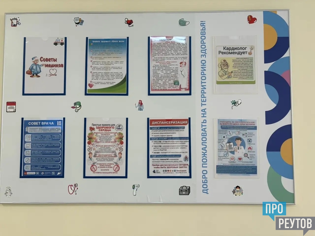 Ко Дню здоровья в Реутове в Городской поликлинике № 2 открыли информационный стенд «Добрые советы». На стенде представлены рекомендации врачей по поддержанию физического и психического здоровья, профилактике распространенных заболеваний, правильному питанию и режиму дня.