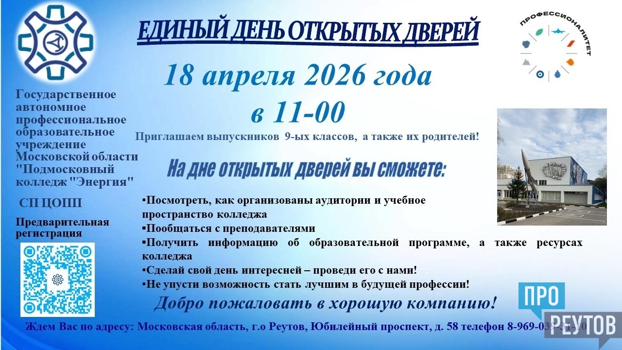 Регистрируйся на Единый день открытых дверей по QR-коду, указанному на картинке.